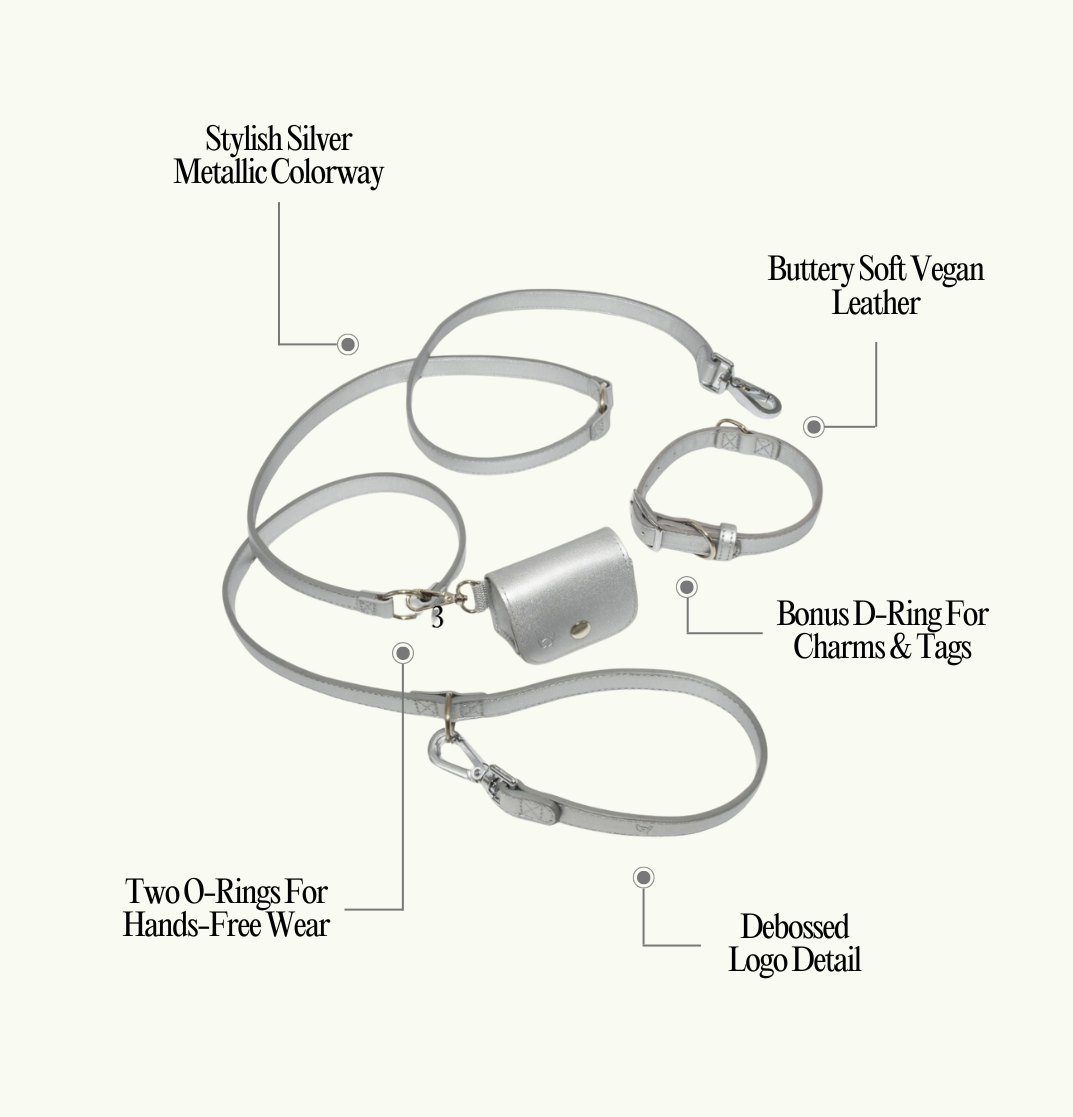 Shine Metallic Leather Collar, Leash, & Poop Bag Pouch Kit