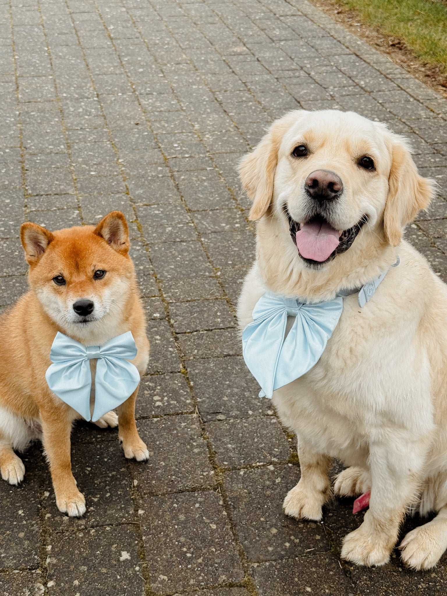 Add instant charm to any collar with our super soft satin bows in calming sky blue.