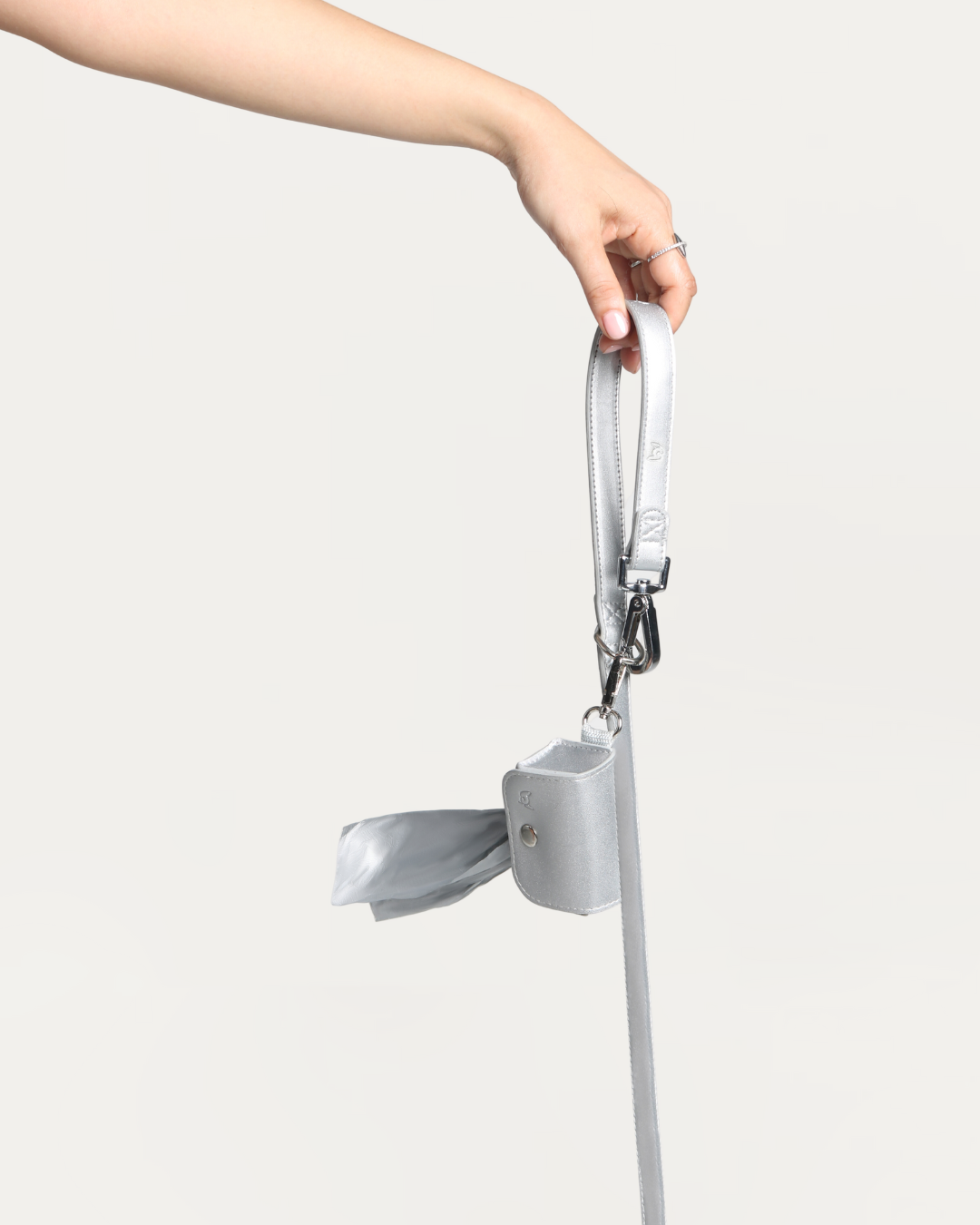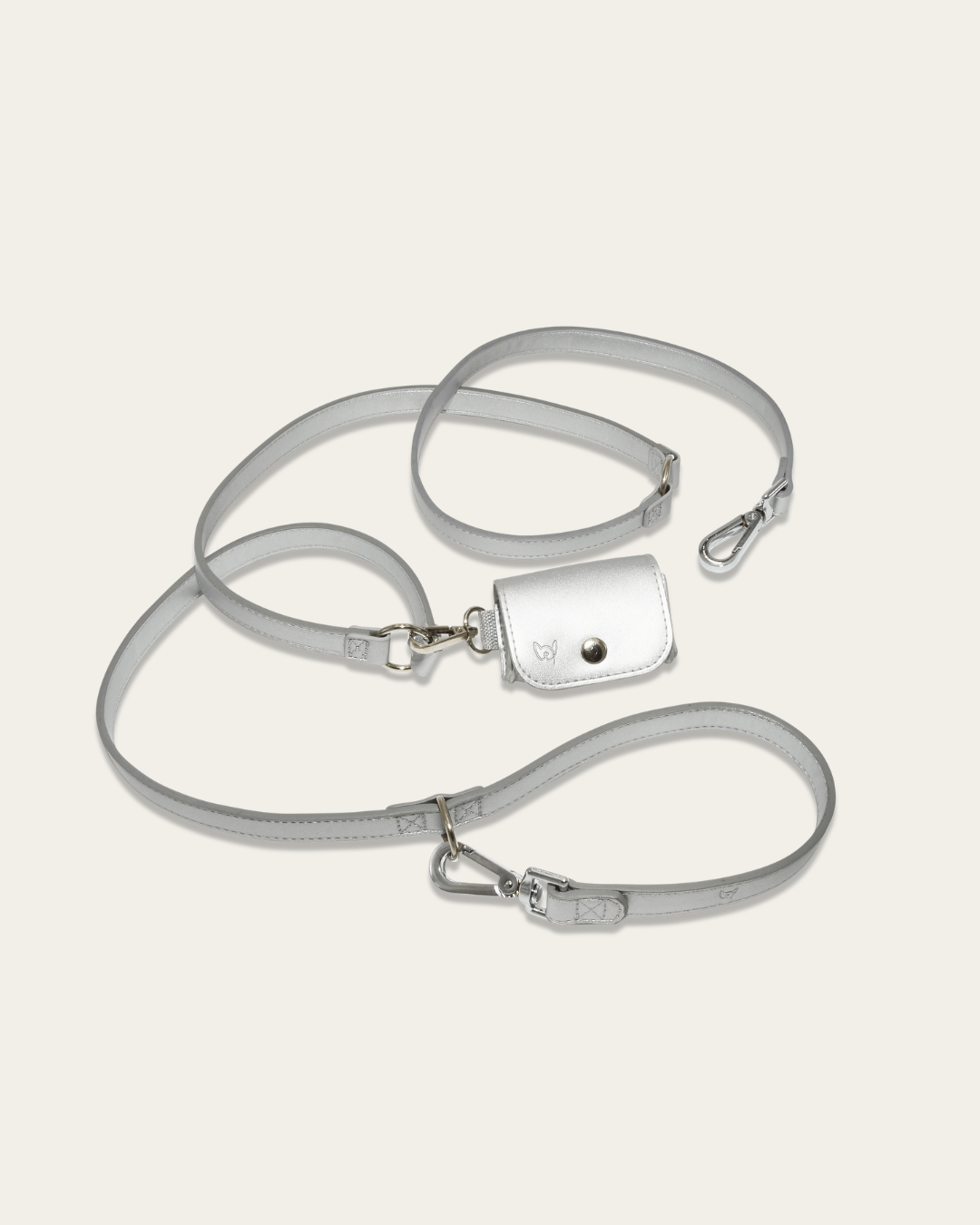 Shine Multiway Metallic Leather Leash & Poop Bag Pouch