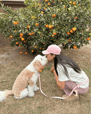 Keep dog walks clean and stylish with our signature baby pink waste bag dispenser.
