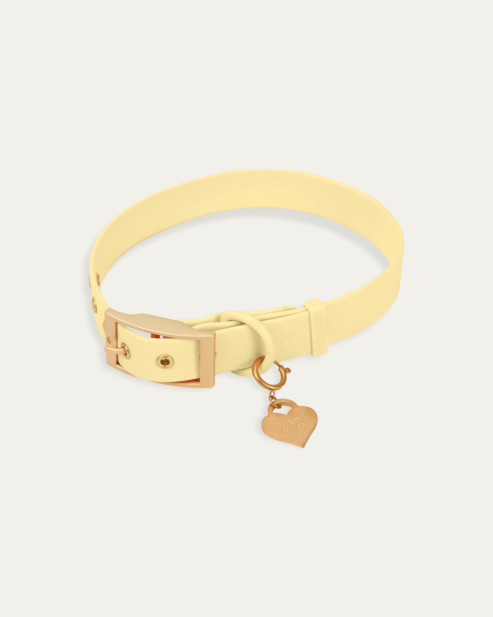 This pastel yellow collar enhances your pup's glow, accented with a matte 18K gold-plated heart charm. Crafted from waterproof DuraWeave with coated hardware, it delivers the look of leather without the upkeep: dirt proof, odor resistant, and easy to clean. Designed for an adjustable, all day fit that feels as good as it looks.